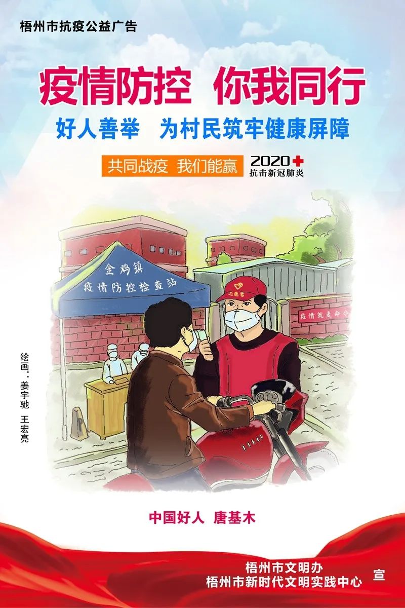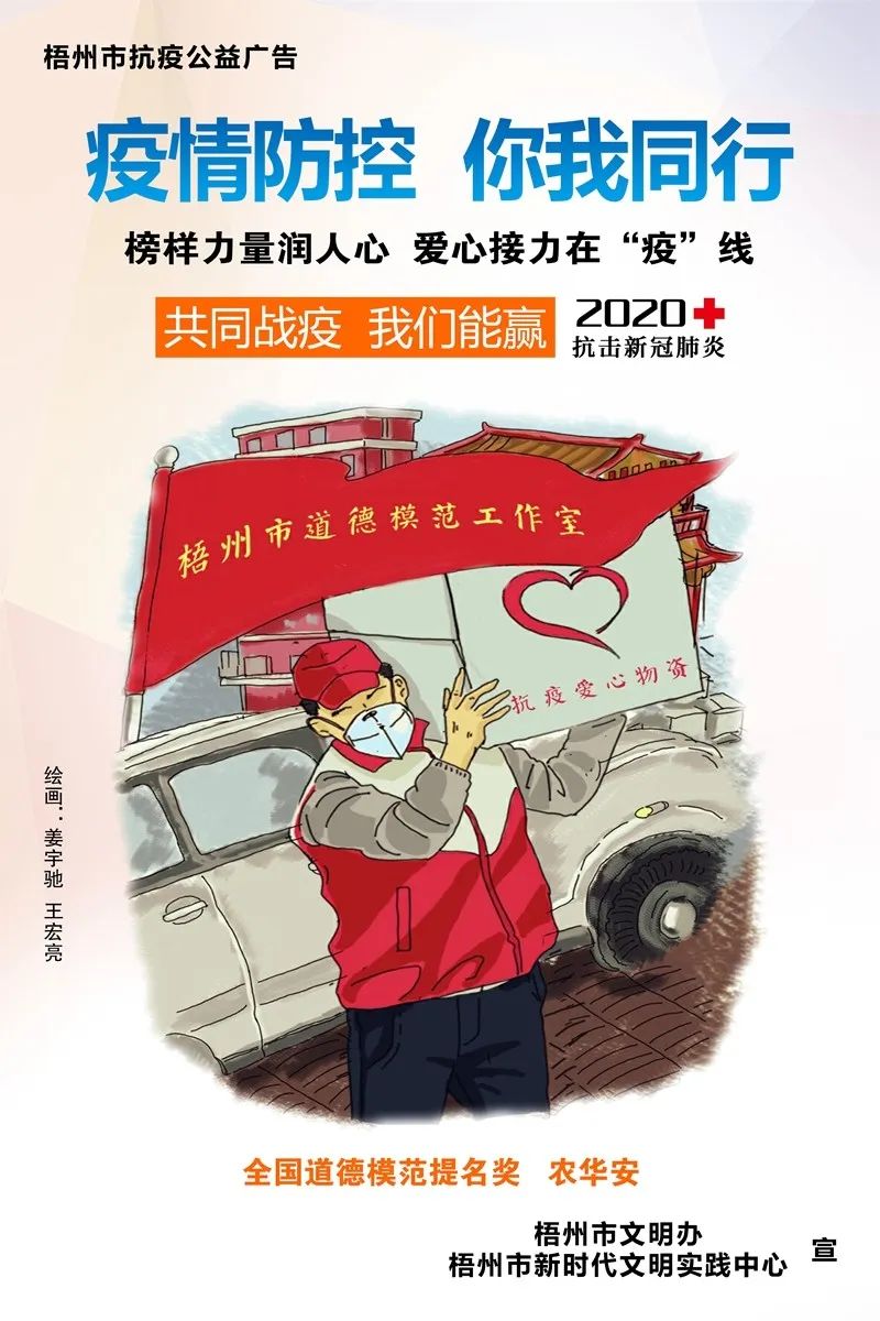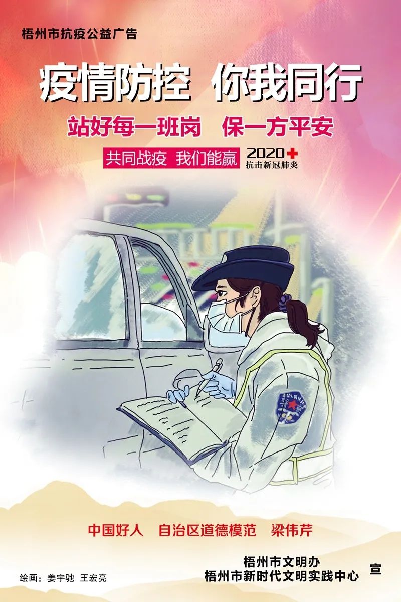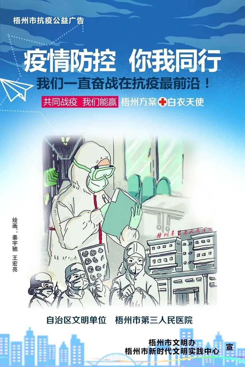 据市文明办相关负责人介绍,这是梧州市文明办、梧州市新时代文明实践中心,以文明单位、道德模范、文明市民标兵等先进典型抗疫为题材,以“疫情防控 你我同行”为主题进行策划而推出的一批公益广告,旨在将梧州广大医务工作者、梧州本土的道德模范、最美人物、身边好人等先进典型的抗疫情景创作成漫画,向读者进行展示,让抗疫宣传更深入人心。