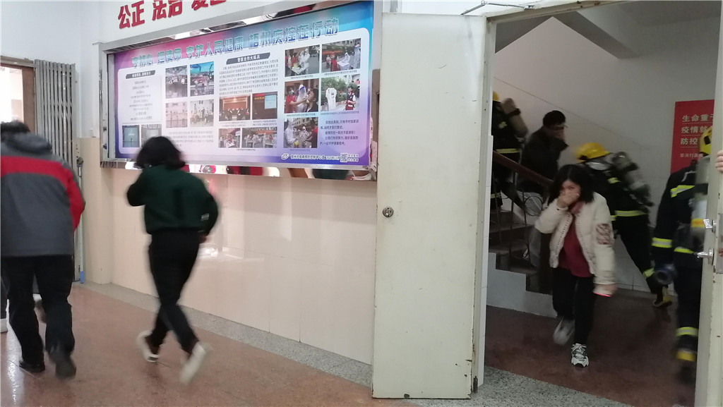 “铃……铃……” ,紧急铃声响起,安全员立即响应,疾控大楼内正在工作的职工,纷纷放下工作,关闭电源,紧急而有序的疏散撤离大楼。