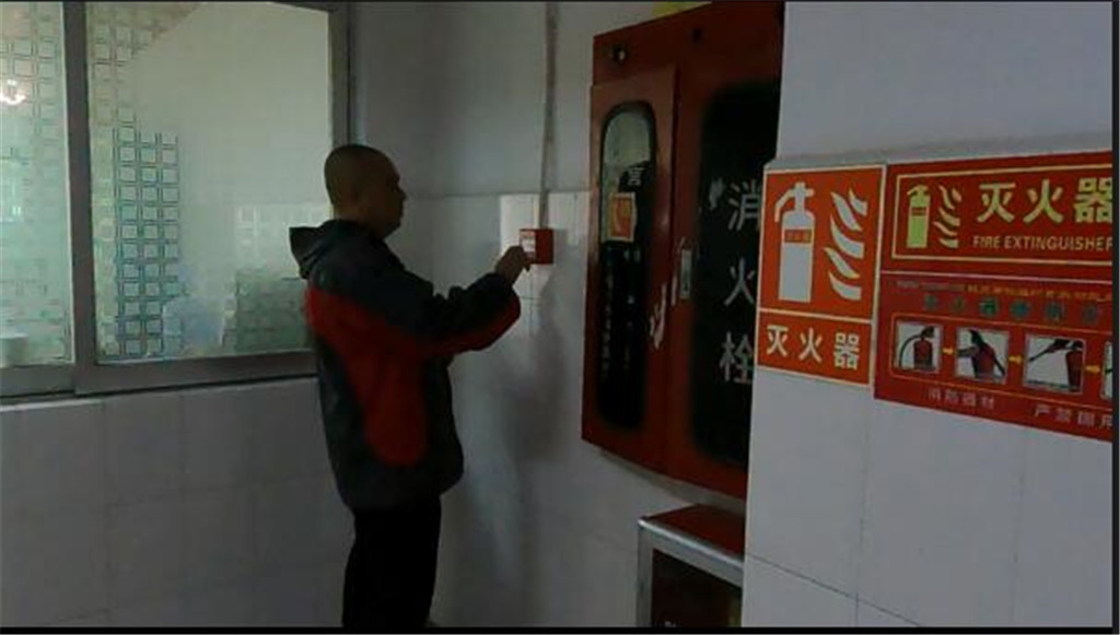 消防安全员发现市疾控大楼3楼发生不明原因火灾,迅速按下消火栓启泵按钮,并电话报告中心应急办。消防控制室值班人员收到需要启泵加压信号时,保安手提灭火器和通讯设备赶往报警信号位置,进行紧急灭火处理。
