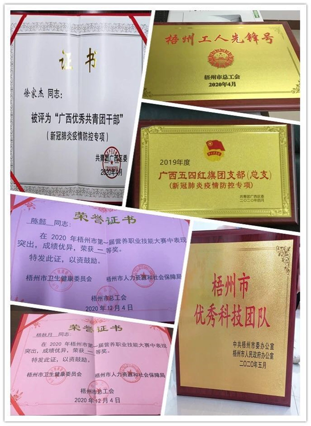 中心团支部积极参与自治区和市级的“两红两优”评选,获“广西五四红旗团支部(新冠肺炎疫情防控专项)”和“广西优秀共青团干部(新冠肺炎疫情防控专项)”。团员青年团队科室还获得“广西三八红旗集体”、“梧州市优秀科技团队”、“梧州市工人先锋号”、“梧州市巾帼文明岗”等多项荣誉。各类技能竞赛也是收获满满。