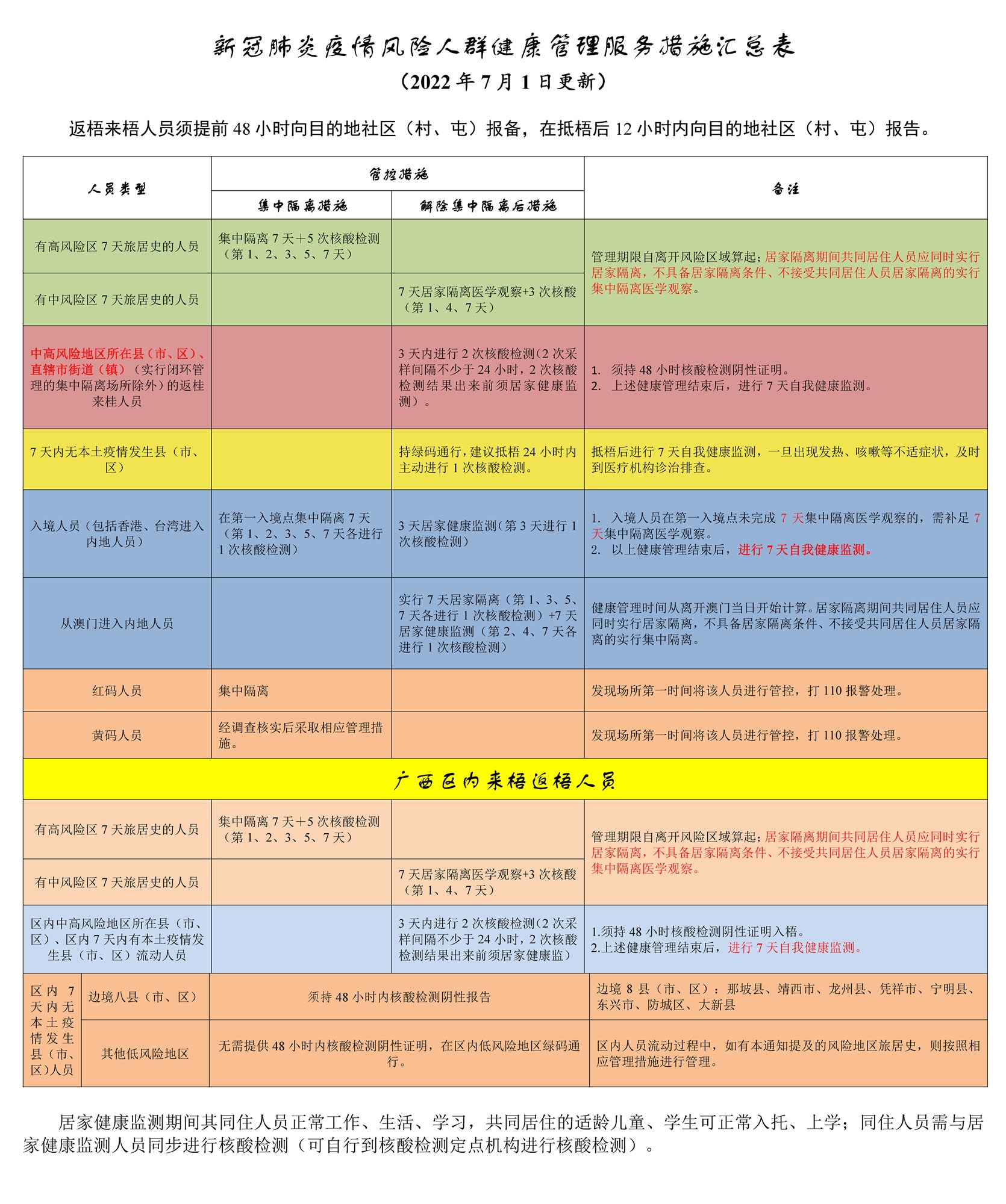 新冠肺炎疫情风险人群健康管理服务措施汇总表 (2022年7月1日更新)