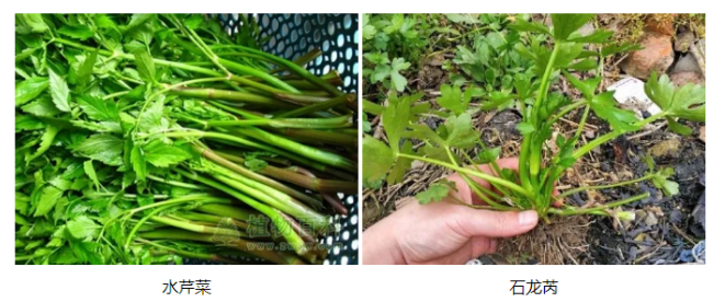 毒芹也就是石龙芮,又名野芹菜、白头翁、毒人参。石龙芮叶片为掌状分裂,水芹菜叶片呈羽状分裂、枝茎更长;石龙芮开黄花,水芹菜则开白花。石龙芮全棵有毒,花的毒性最大,误食后会有恶心、呕吐、手脚发冷、四肢麻痹等中毒症状,严重的可造成死亡。