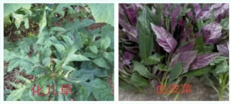 化儿草是一种常见的野生植物,其外形、颜色与血皮菜极为相似,容易被误认为血皮菜。化儿草和血皮菜从页面颜色看,都是青面紫背,只是叶沿有明显区别,血皮菜叶沿有浅而小的锯齿,而化儿草叶沿有深而长的锯齿。