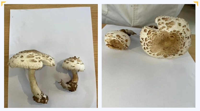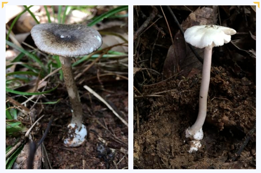 剧毒灰花纹鹅膏、裂皮鹅膏均为灰白色,与可食用口蘑极相似。