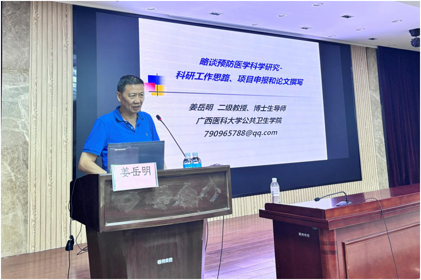 广西医科大学姜岳明教授作预防医学科学研究相关知识授课