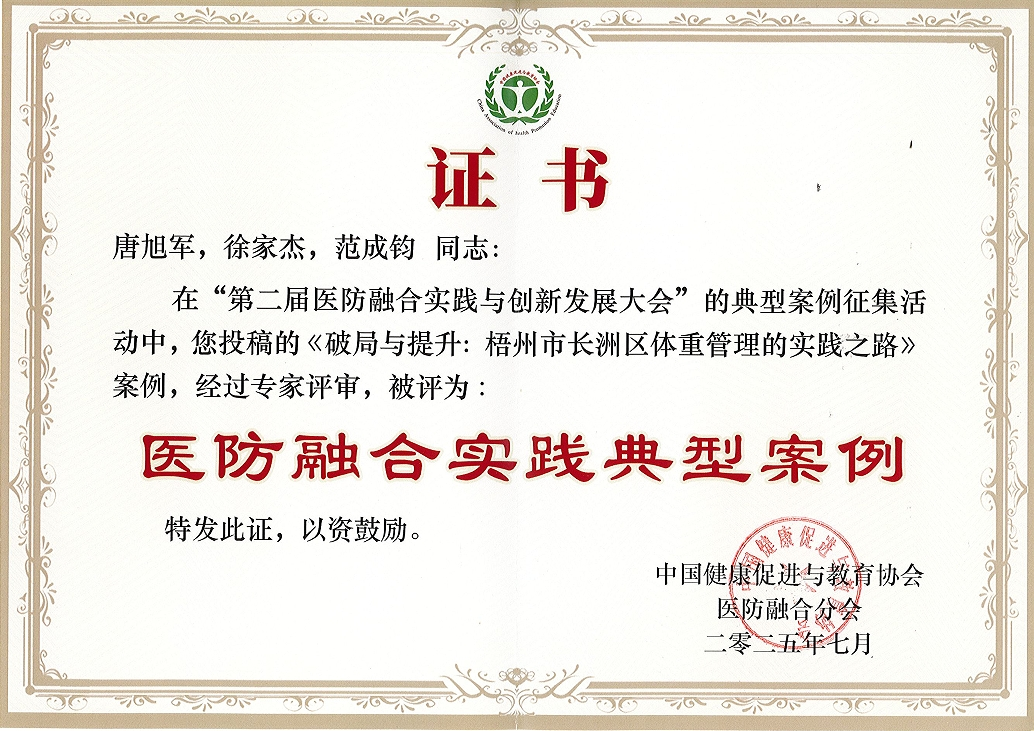 梧州市疾病预防控制中心撰写的《破局与提升:梧州市长洲区体重管理的实践之路》被中国健康促进与教育协会医防融合分会评为“医防融合实践典型案例”,7月27日,梧州市疾病预防控制中心副主任唐旭军受邀在中国健康促进与教育协会医防融合分会举办的第二届医防融合实践与创新发展大会上介绍长洲区体重管理的经验做法。