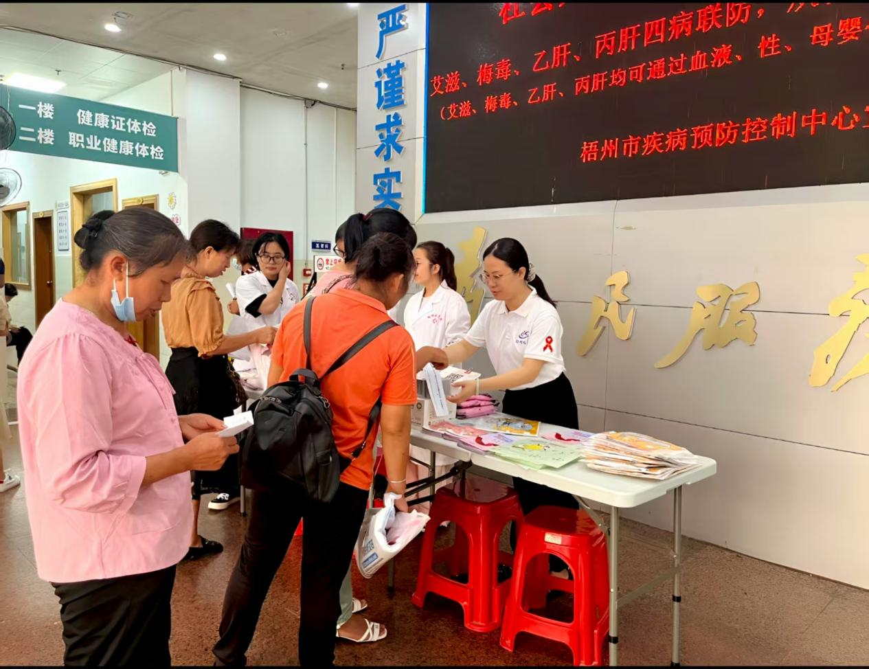 2025年7月28日是第15个世界肝炎日,宣传主题是“社会共治,消除肝炎”。梧州市疾病预防控制中心工作人员开展病毒性肝炎、艾滋病、梅毒的传染病防治知识宣传活动。同时免费发放艾滋病及丙肝预知识读本和安全套、现场进行有奖问答活动,以增强群众的防病意识。