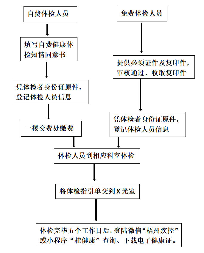 根据《梧州市特定行业从业人员免费健康体检工作实施细则》(梧卫疾控发[2019]10号)文件精神,特定行业人员健康体检分为两类:一是符合该文件要求的免费健康体检人员;二是不符合该文件要求的免费健康体检,需要自费健康体检人员。