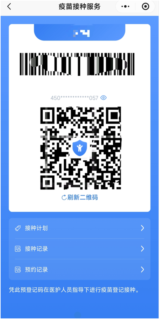 点击“亮码”,显示接种二维码。您在接种门诊出示该二维码,即可开展疫苗接种。