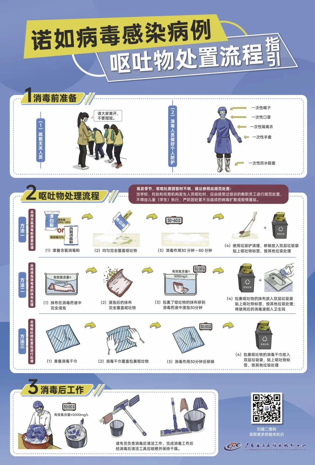 一旦学校、幼儿园等人员密集场所出现病例呕吐,正确处理呕吐物是切断传播链的关键一步!以下操作指引,请务必收好!
