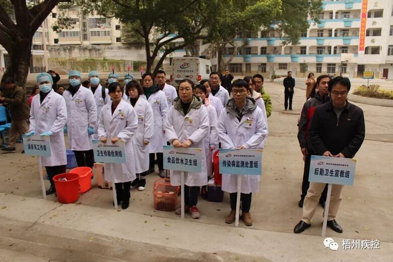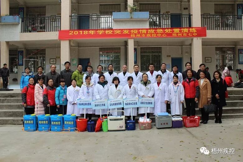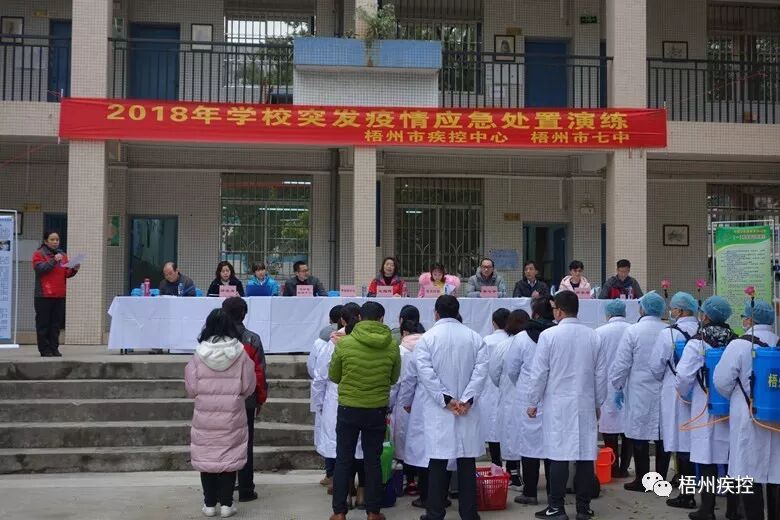 梧州市疾病预防控制中心与市七中联合举办的“2018年学校突发疫情应急处置演练”在春节前夕悄然展开。
