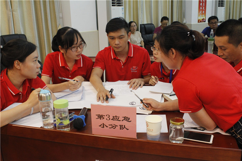 演练以桌面推演形式,由主持人根据事先假定的演练情景,提出问题,队员分组讨论方式进行……