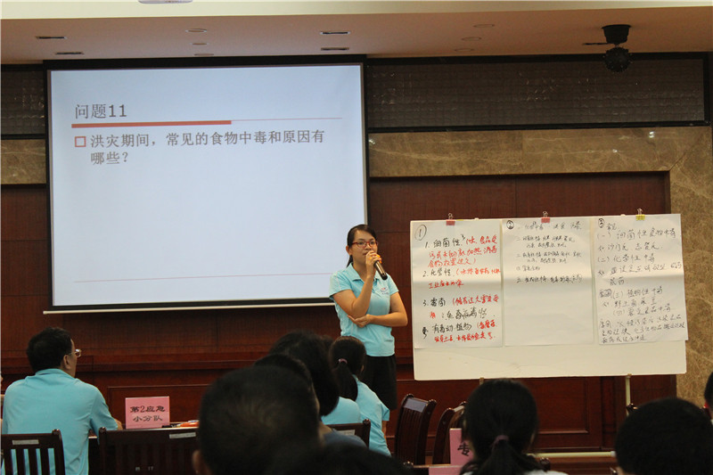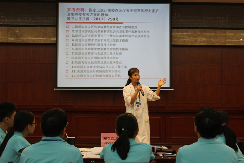 队员们围绕洪灾后灾情评估、常见疫情信息收集传染病预防、环境卫生、食品与饮用水安全、病媒生物防制、健康宣教、临时安置点卫生防疫等问题,逐一讨论,做出现场处置的方法并进行现场讲解。